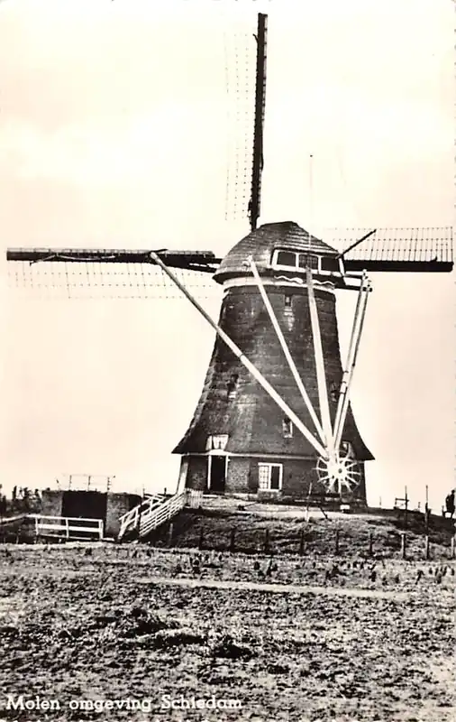 Gebr. Spanjersberg N.V. 1258. Gelopen ansichtkaart met postzegel en stempel Schiedam 1961. Licht knikje bij postzegel.