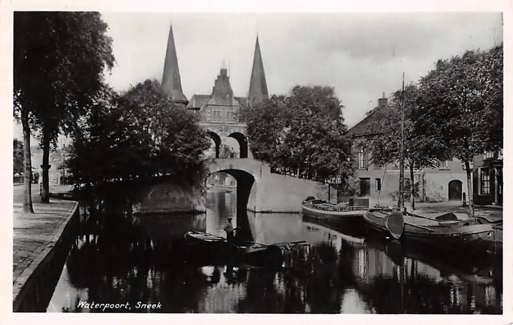 Sneek Waterpoort met binnenvaart schepen 1951 HC4392 Wyprzedaż