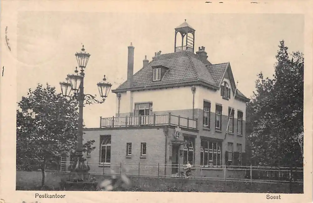 Uitg. J.A. Wiersma, Soest. Gelopen ansichtkaart met postzegels en stempels Soest 1918.
