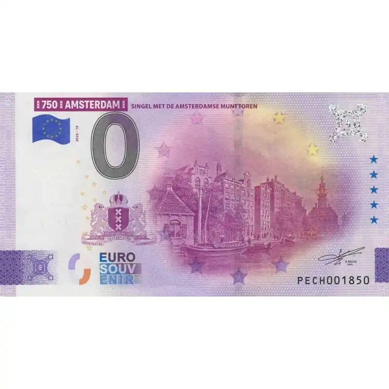 0 Euro biljet Nederland 2025 ‘750 Jr. Amsterdam-Singel met Amsterdamse Munttoren’ Unc