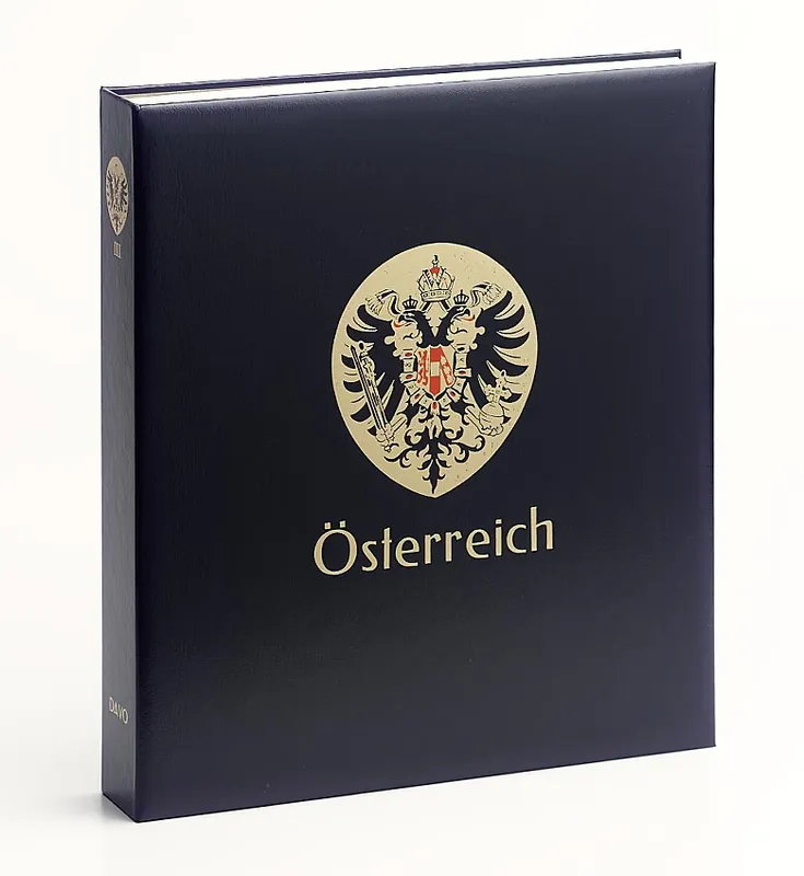 Davo Luxe album Oostenrijk deel III (tijdvak 1970-1989)Luxe uitvoering (170 grs. stevig papier) met heldere klemstroken in donkerblauwe gewatteerde band, compleet met cassette.