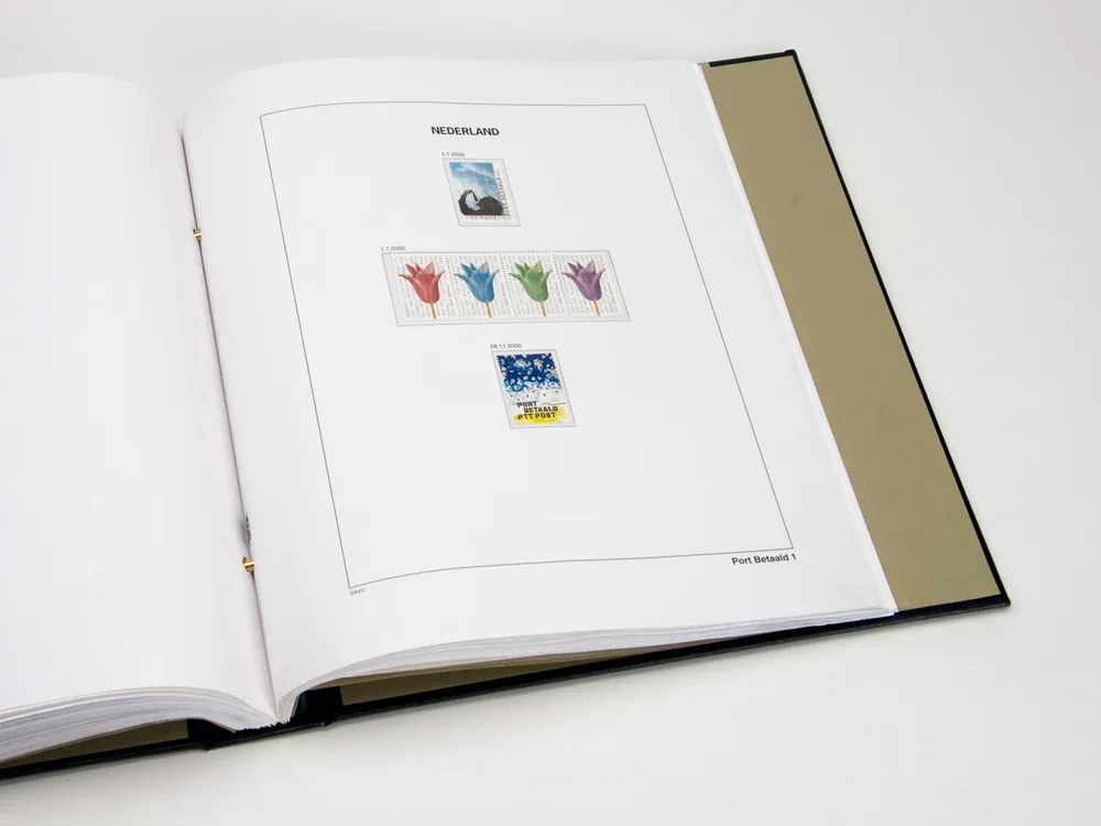 Davo Luxe supplement Nederland Port Betaald 20001 blad van stevig (170 grs.) papier met heldere klemstroken voor het onderbrengen van de Port Betaald zegels uit het jaar 2000.