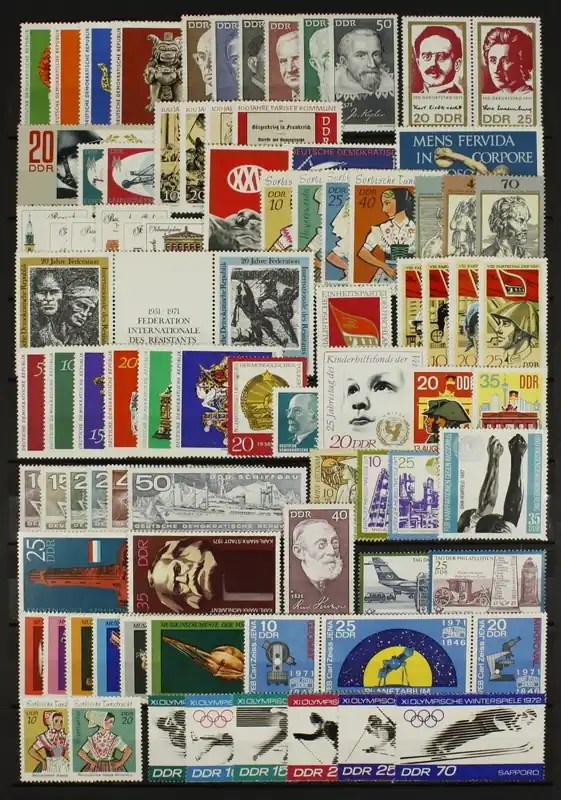 DDR, Jaarset 1971, postfris / MNHInclusief Michel 1636-1643 (Kleinbogen), 1650-1651 (Paar), 1680-1681 (strook), 1714-1716 (strook) en 1717-1722 (Kleinbogen)