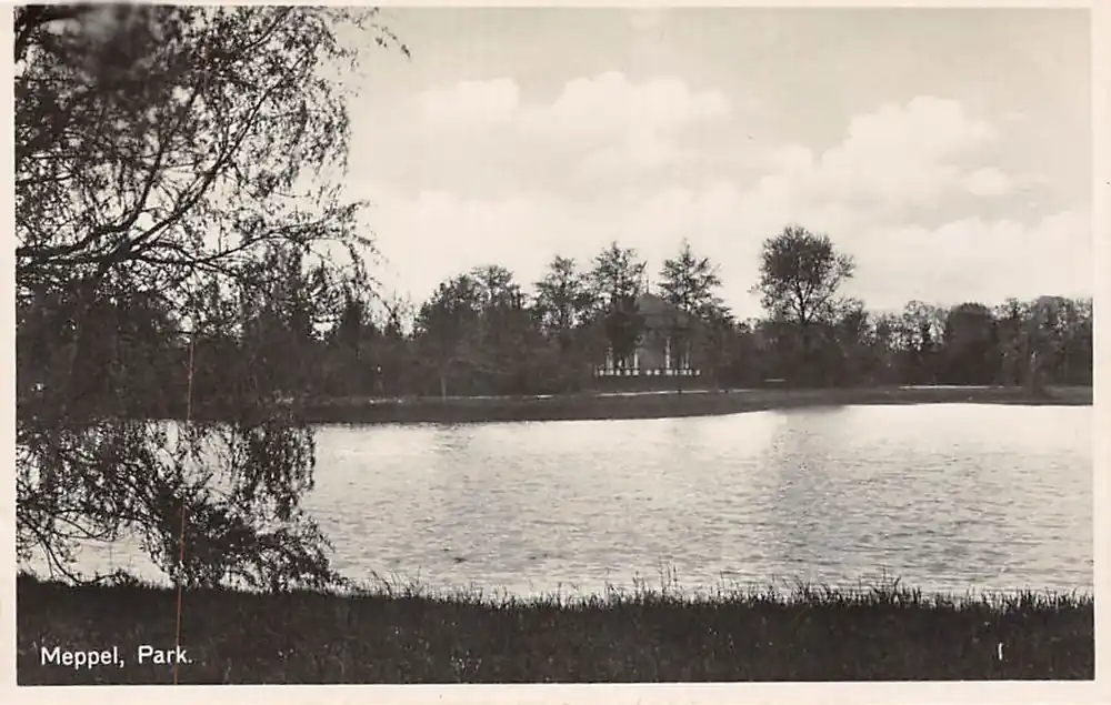 Wolfer’s Boekhandel, H.P. Bouwman, Meppel. Gelopen ansichtkaart met postzegel en stempel 1932.