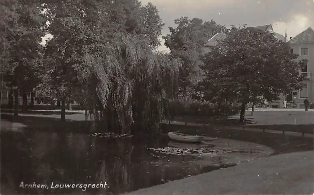 Newo Arnhem. Mooie gelopen ansichtkaart met stempel Arnhem Station 1930; postzegel netjes verwijderd.
