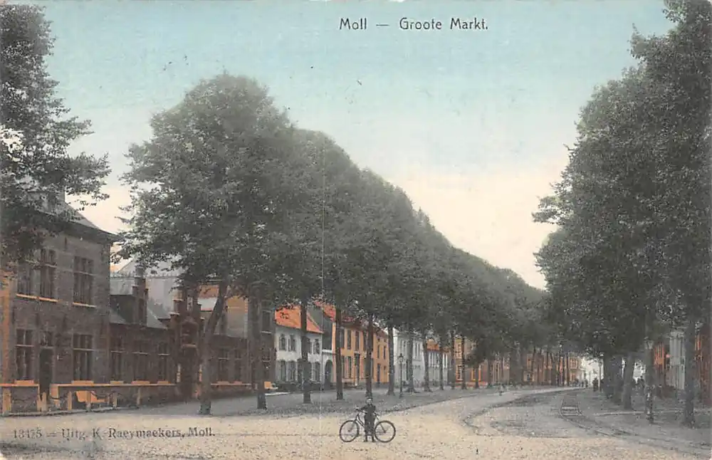 13475. Uitg. K. Raeymaekers, Moll. Gelopen ansichtkaart met postzegels en stempel 1907.