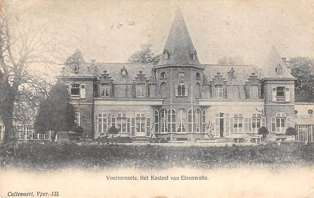 Callewaert, Yper.-123. Gelopen ansichtkaart met stempels 1905. Lichte gebruikerssporen; zie de scans.