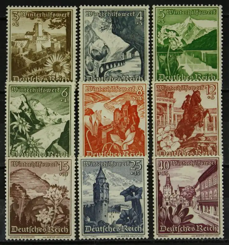 Deutsches Reich 1938, Michel 675-683, Winterhulp: Landschappen en alpenbloemen, complete serie, postfris / MNH
