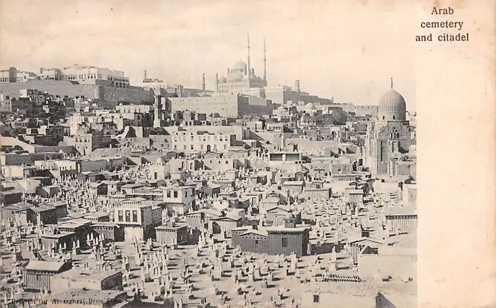 Printed fot Arougheti Bros Suez. Ongelopen ansichtkaart. Langs randjes wat roestplekjes.