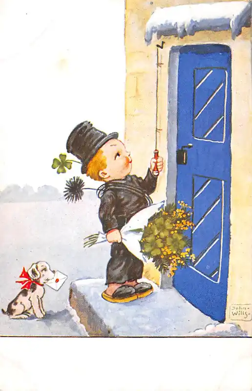 Tani Fantasie Kind Schoorsteenveger met bos bloemen Vintage Illustrator John Wills HC25850