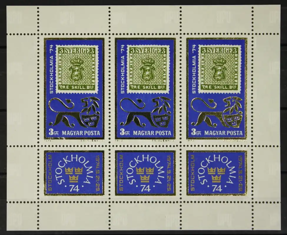 Hongarije 1974, Michel 2981 A, Postzegeltentoonstelling Stockholmia, getande Kleinbogen, postfris/MNH