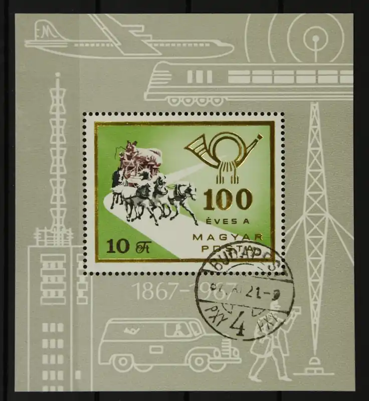 Hongarije 1967, Michel Blok 60 A, 100 Jaar Hongaarse Post, getand blok, gestempeld/used