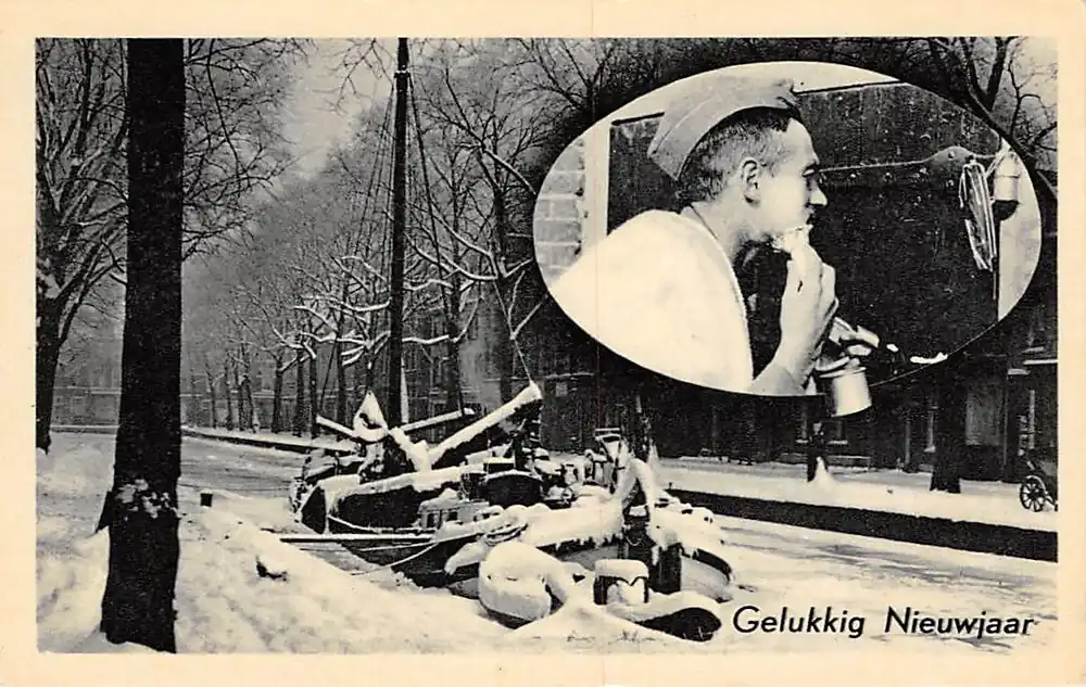 Tani Militair WO2 Mobilisatie Schip in de winter in de gracht Soldaten HC10239