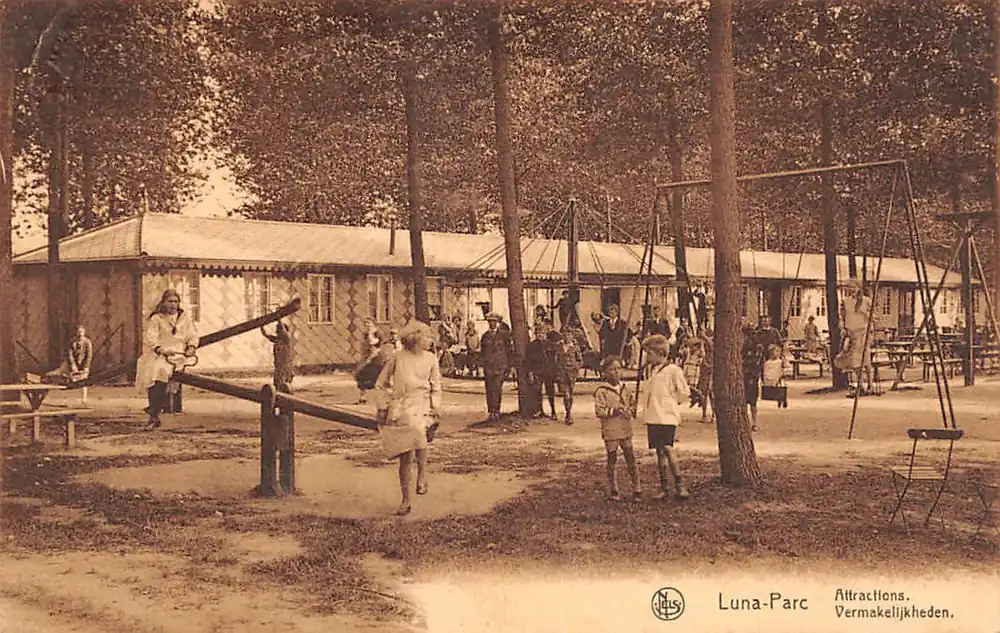 Er. Thill, Bruxelles. Knikje in hoekje bij postzegels. Gelopen ansichtkaart met postzegels en stempels 1928.