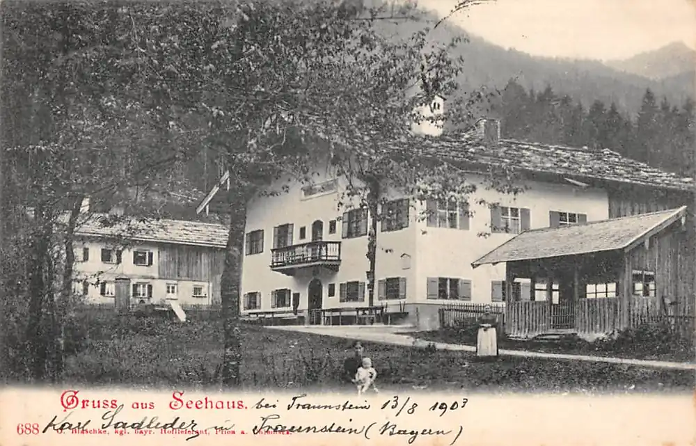 688 O. Blaschke kgl. Bayr. Prien a. Chiemsee. Mooie gelopen ansichtkaart met postzegel en stempels Traunstein en Rossum 1903.