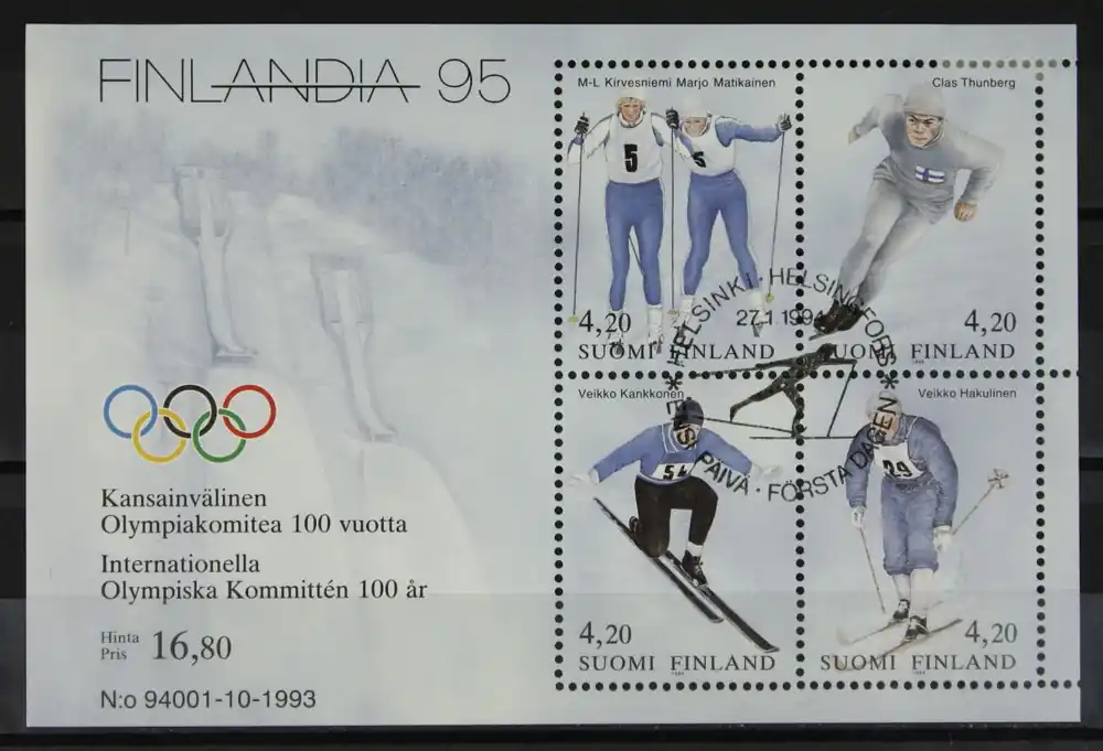 Finland 1994, Michel Blok 11, Int. Postzegelteentoonstelling “Finlandia ’95” / 100 Jaar IOC / Finse medaillewinnaars, gestempeld / used