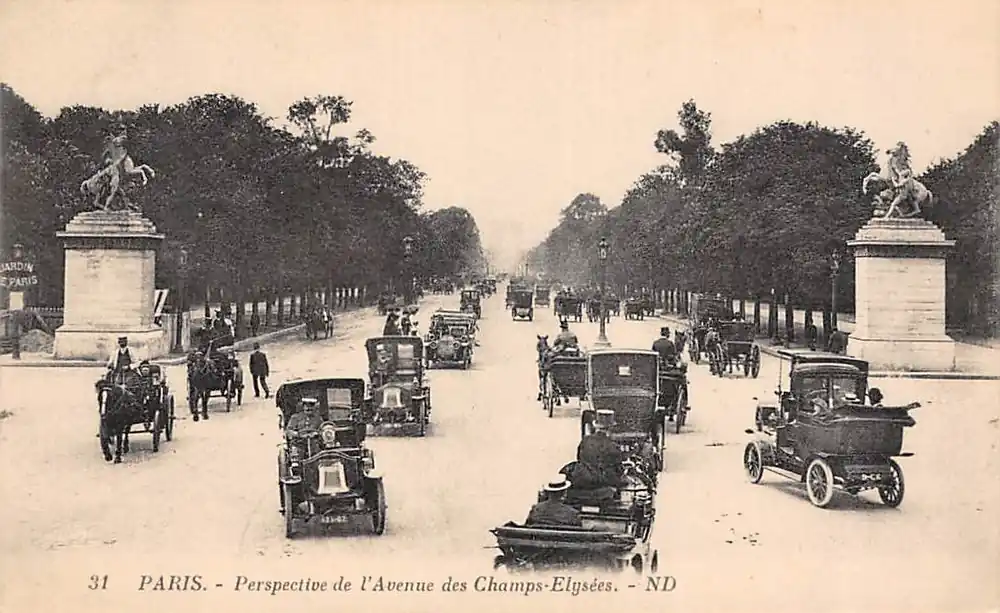 Tylko dziś Frankrijk Paris Perspective de l’Avenue des Champs-Elysees Auto Paard en wagens Standbeeld France Europa HC48431