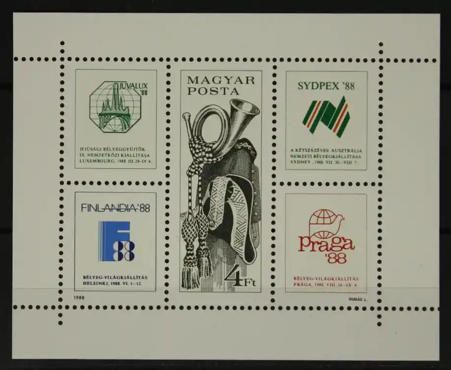 Hongarije 1988, Michel Blok 197 A, Postzegeltentoonstelling Juvalux, getand blok, postfris/MNH