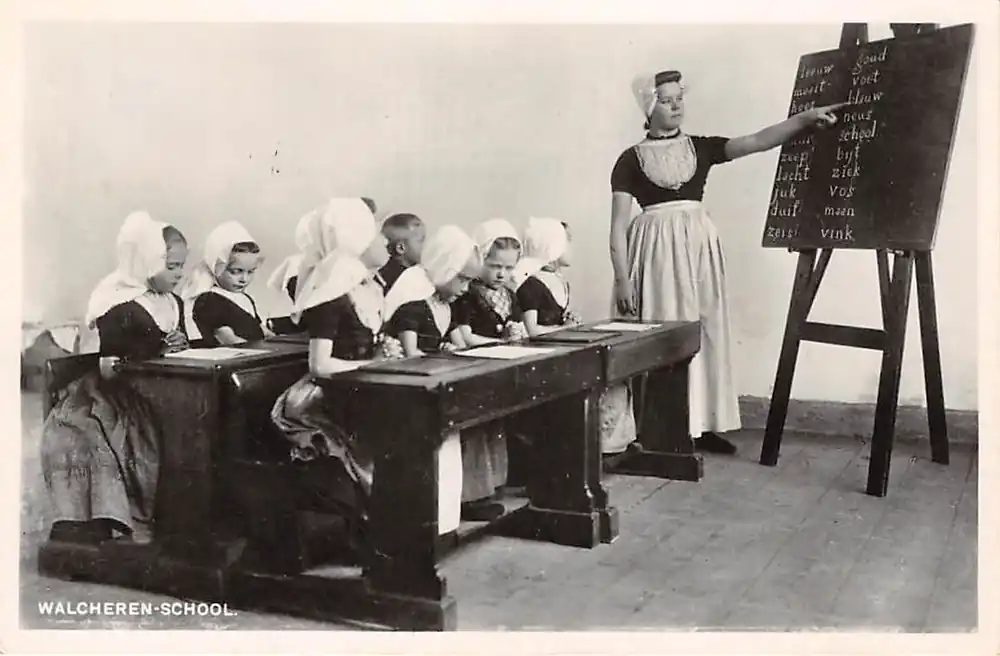 Walcheren School met onderwijzeres en kinderen in klederdracht 1951 Vintage HC8827 Oferta