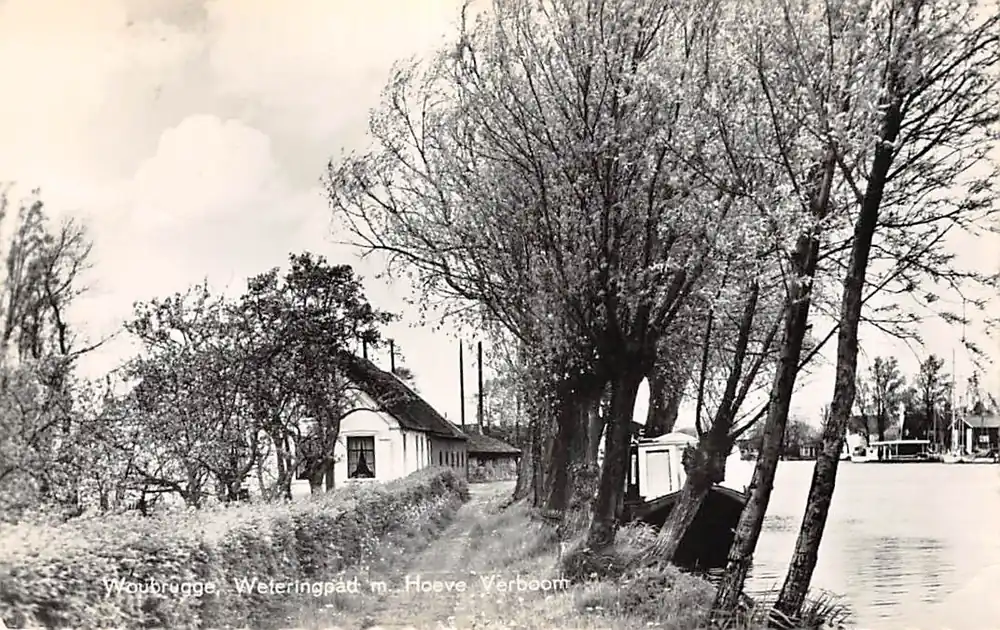 Mullers Souvenirs en Luxe Artikelen. 560. Gelopen ansichtkaart met postzegel en stempel Woubrugge.