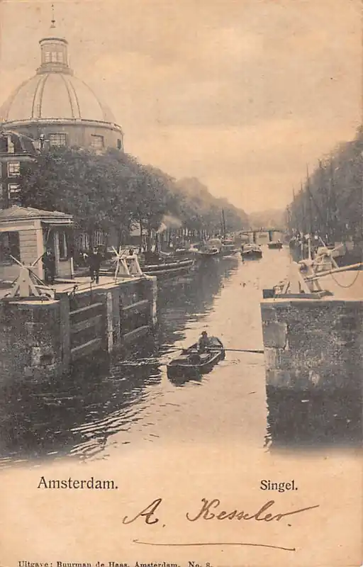 Uitg. W. Buurman de Haas, Amsterdam. No. 8. Gelopen ansichtkaart met gedeeltelijk postzegel en stempels 1902. Gebruind.