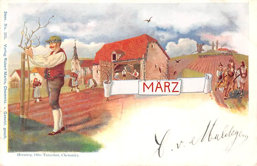 Dess. No. 103. Verlag Robert Martin, Chemnitz. Herausg. Otto Tauscher, Chemnitz. Met glittertjes. Gelopen ansichtkaart met postzegel en stempel 12 Februari 1901. Zie ook de andere maanden!