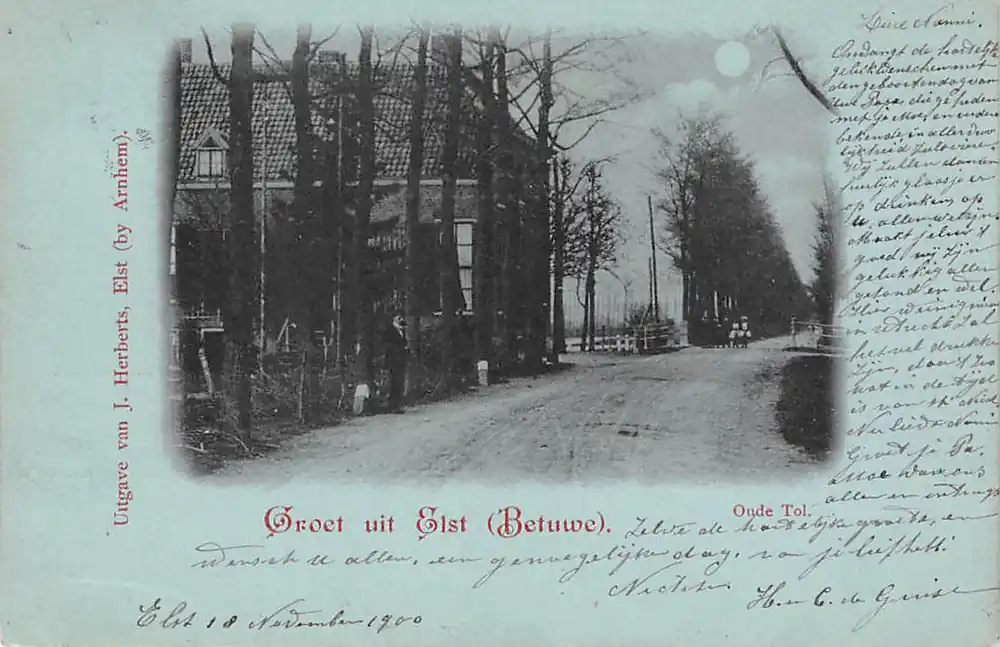 Uitgave van J. Herberts, Elst. Mooie in 1900 gelopen ansichtkaart met postzegel en stempels.
