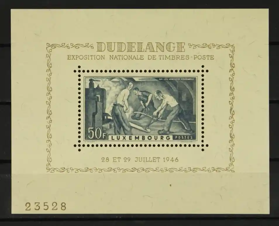 Luxemburg 1946, Michel 412, Blok 6, Nationale postzegeltentoonstelling Düdelingen, postfris blok / MNH