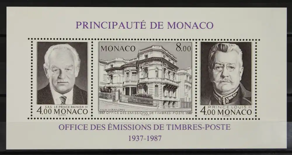 Monaco 1987, Michel Blok 37 A, 50 Jaar Uitgeverij voor Postzegels, getand blok, postfris / MNH