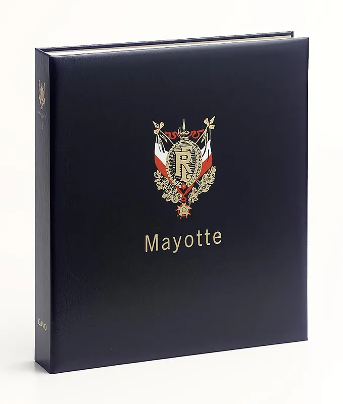 Davo Luxe album Mayotte I (tijdvak 1892-2011)Luxe uitvoering (170 grs. stevig papier) met heldere klemstroken in donkerblauwe gewatteerde band, compleet met cassette.
