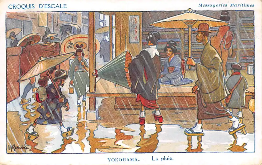 Wysoka jakość Fantasie Illustrator Henri Gervese Japan Yokohama La Pluie Cie Messageries Maritimes Marine Croquis d’Escale Cartoon Frankrijk France Europa HC54896
