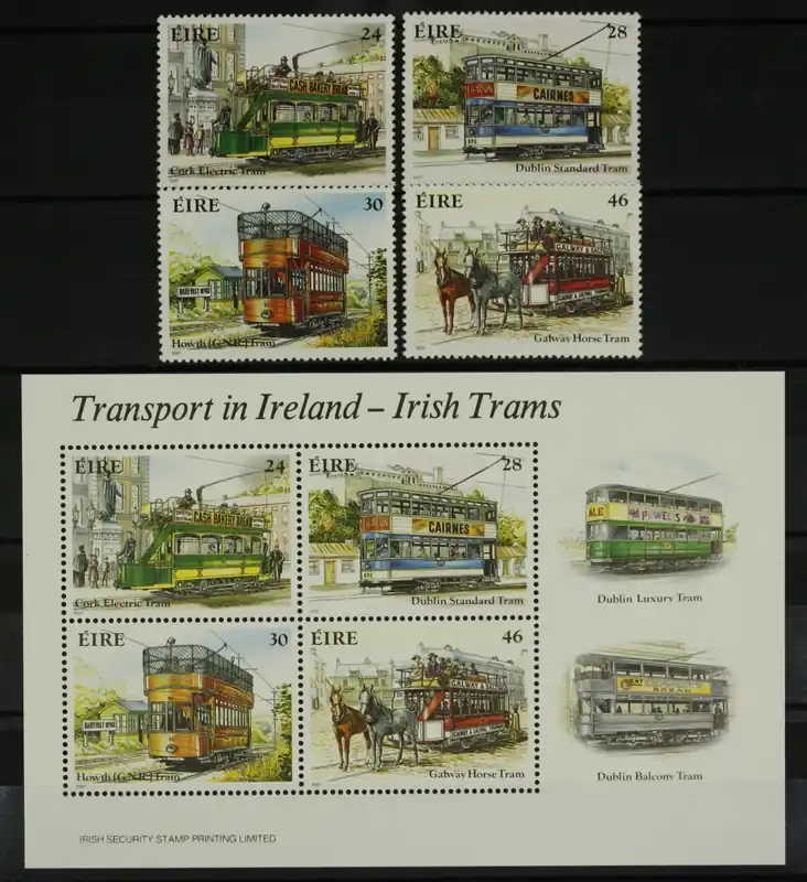 Ierland 1987, Michel 615-618, Transport – Ierse trams, complete postfrisse serie incl. Blok 6 / MNH