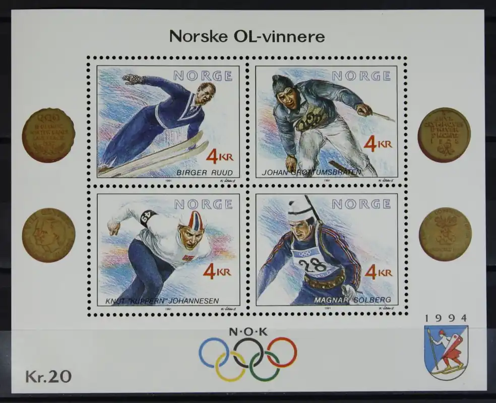Noorwegen 1991, Mcichel Blok 16, Olympische Winterspelen: Noorse Medaillewinnaars (III), postfris / MNH