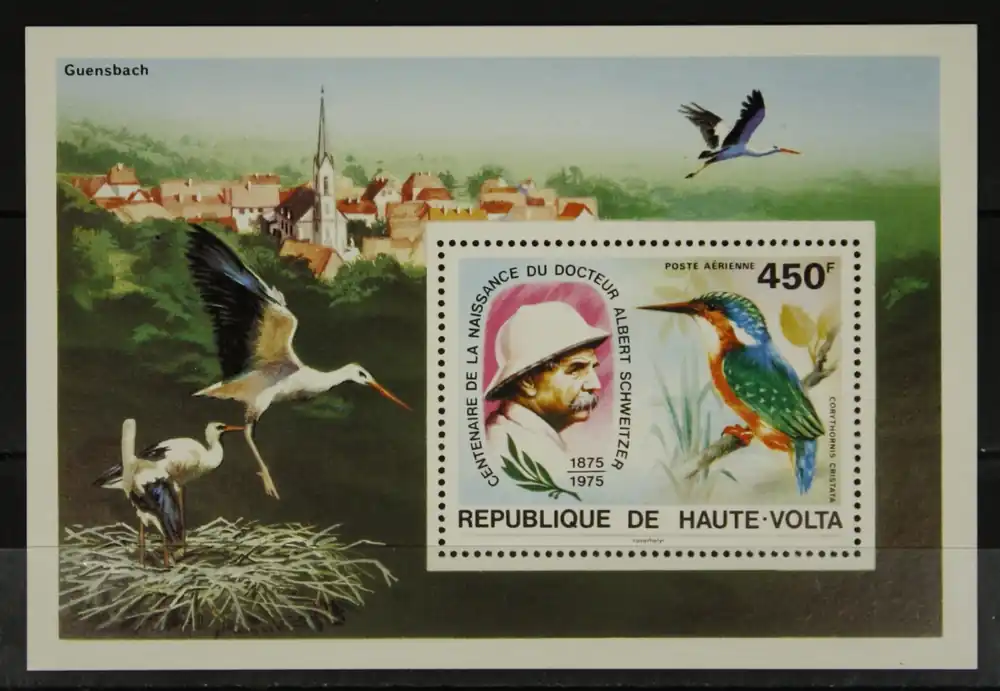 Opper-Volta 1975, Michel Blok 35, Geboortedag Albert Schweitzer / Vogel, postfris blok / MNH