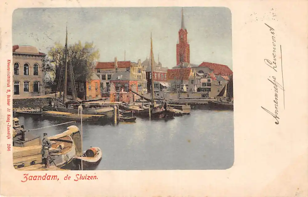 Kleurenlichtdruk S. Bakker Jz.. 204. Mooie gelopen ansichtkaart met postzegel en stempels 1900.