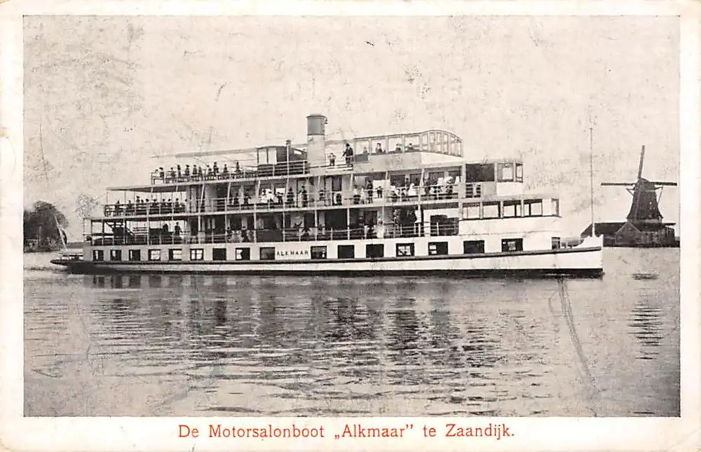 Zaandijk De Motorsalonboot Alkmaar te Zaandijk Molen 1916 Scheepvaart Schepen HC1393 Autentyczny