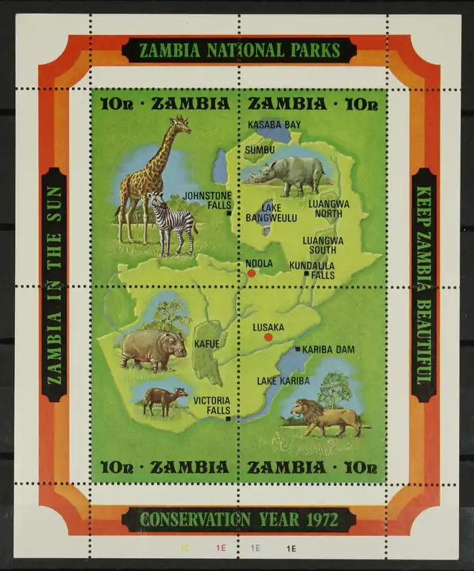 Zambia 1972, Michel 85-88 (Blok 2), Landkaart met Nationaal Park, postfris blok / MNH