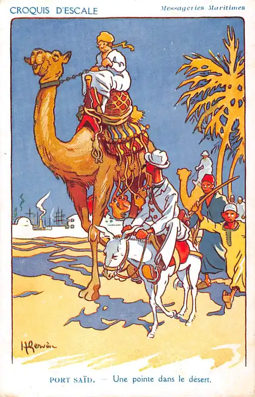 Imp. Max Cremnits, Paris. Ongelopen ansichtkaart. Hoekjes iets gesleten.\\r\\n\\r\\nCharles Millot, alis Henri Gervese, werd geboren op nr. 12 Boulevard de Besançon in Vesoul[1].\\r\\n\\r\\nHij slaagde voor het vergelijkend examen voor de marineschool in 1897 en werd opgeleid op de fregatschool\\u00a0Iphigénie\\u00a0in 1899-1900[2].\\r\\n\\r\\nHij studeerde af aan de\\u00a0Marineacademie\\u00a0en diende in het Verre Oosten, in\\u00a0China, waar hij het bevel voerde over de\\u00a0kanonneerboot\\u00a0Doudart de Lagrée\\u00a0op de\\u00a0Yangtze-rivier\\u00a0in 1913-1914 en vervolgens op de\\u00a0Dardanellen\\u00a0tijdens de\\u00a0Eerste Wereldoorlog. Hij eindigde zijn carrière als hoofd\\u00a0van de Naval Historical Service.\\r\\n\\r\\nIn 1921 werd hij benoemd tot\\u00a0schilder bij de marine.\\r\\n\\r\\nNa in\\u00a0België\\u00a0te hebben gewoond, emigreerde hij in 1930 naar\\u00a0Argentinië\\u00a0en werkte hij voor de\\u00a0Compagnie des Chargeurs Réunis, waar hij affiches en talrijke ansichtkaarten illustreerde over het leven van zeelieden in China en Latijns-Amerika.\\r\\n\\r\\nHij schreef tekeningen voor verschillende kranten zoals\\u00a0Le Rire,\\u00a0Fantasio\\u00a0en\\u00a0La Vie parisienne.\\r\\n\\r\\nHij staat bekend om zijn serie\\u00a0ansichtkaarten\\u00a0en\\u00a0cartoons\\u00a0over de marine als inspiratie voor de andere beroemde marinecartoonist\\u00a0Sahib.
