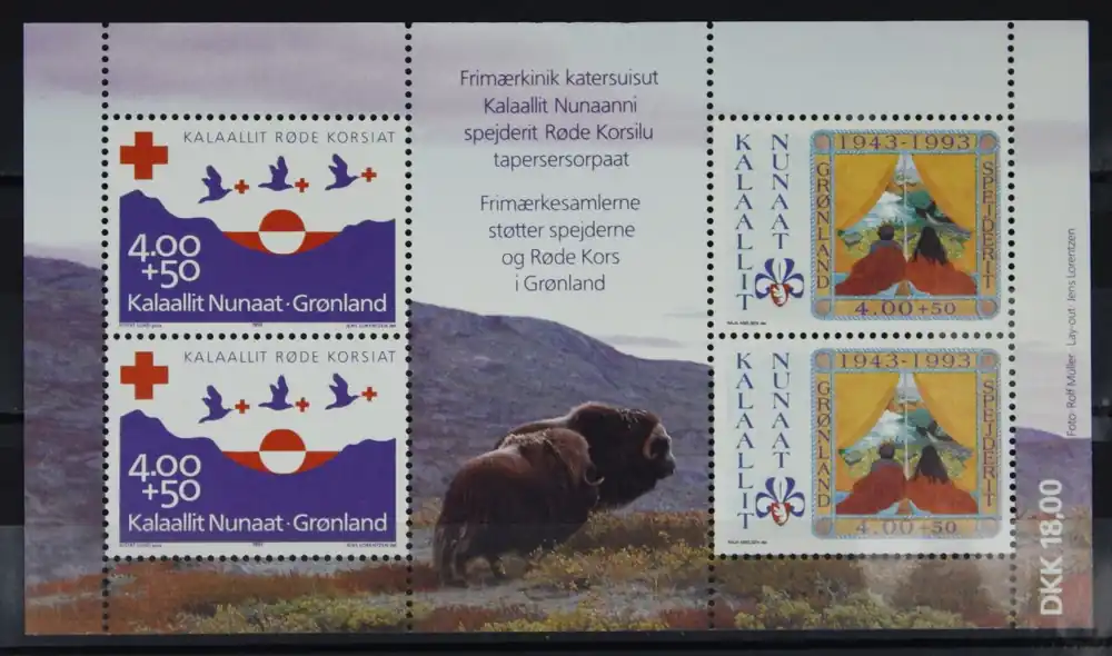 Groenland 1993, Michel Blok 4, 70 Jaar Rode Kruis en 50 Jaar Scouting in Groenland, postfris / MNH