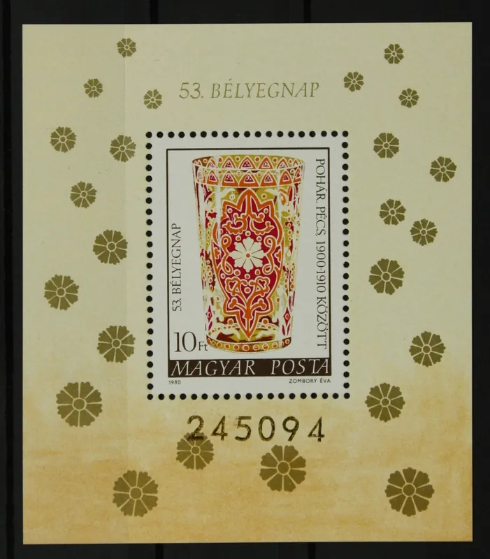 Hongarije 1980, Michel Blok 144 A, Dag v.d. Postzegel: Glaskunst, getand blok, postfris/MNH