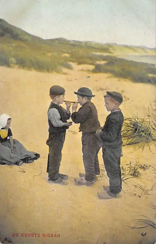 Zeeland Kinderen in klederdracht in de duinen De eerste sigaar HC25941 Zwrot pieniędzy