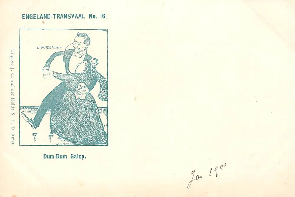 Zuid-Afrika Boerenoorlog Boer War Engeland – Transvaal No. 16 Dum-Dum GalopQueen Victoria en Chamberlain Caricature Karikatur Spotprent England Europa South Africa Afrika HC41005 Zwrot pieniędzy