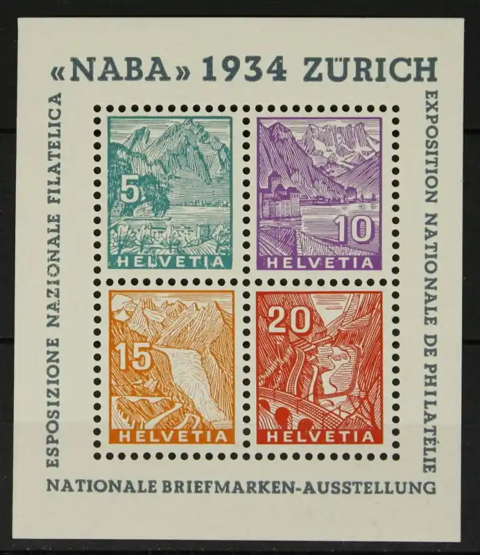 Zwitserland 1934, Michel Blok 1, Postzegeltentoonstelling NABA 1934, postfris / MNH