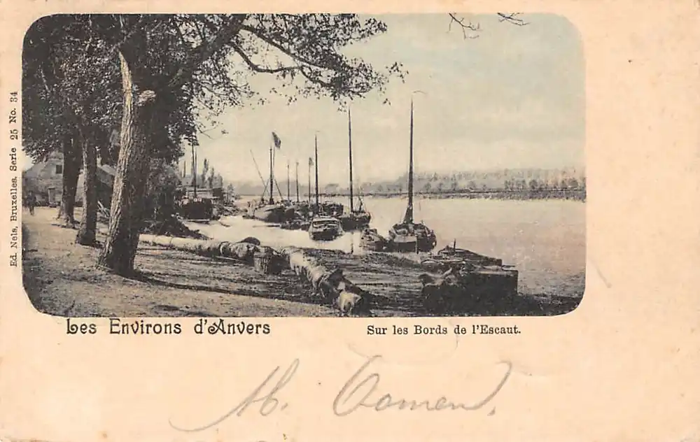Zwrot pieniędzy België Les Environs d’Anvers Sur les Bors de l’Escaut 1900 Antwerpen Schepen aan de oevers van de Schelde Europa HC56003