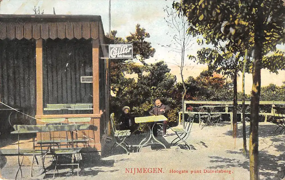 Uitgave J. Glaser, Nijmegen. Gelopen ansichtkaart met verwijderde postzegel. en stempel. Hoekjes gebruikt en lichte gebruikerssporen.