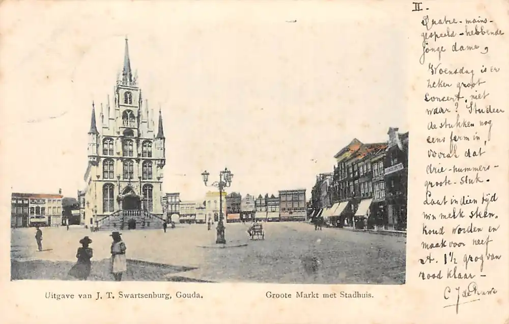Uitgave van J.T. Swartsenburg, Gouda. Gelopen ansichtkaart met postzegel en stempels 1901. Heel licht roestig.