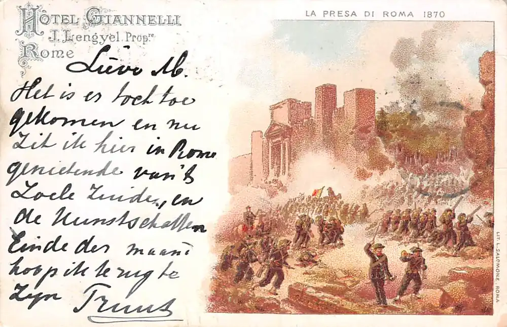 Lit. L. Salomone, Roma. Gelopen ansichtkaart met postzegel en stempels 1900. Hoekjes miniem gesleten.