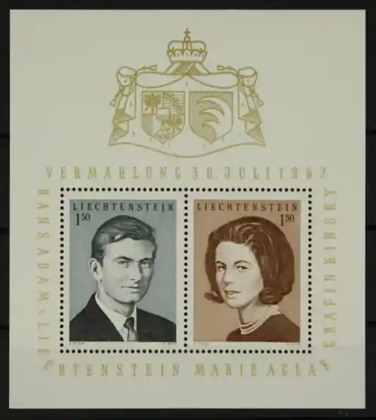 Liechtenstein 1967, Michel 478-479, Blok 7, Huwelijk Hans-Adam en Marie, postfris blok
