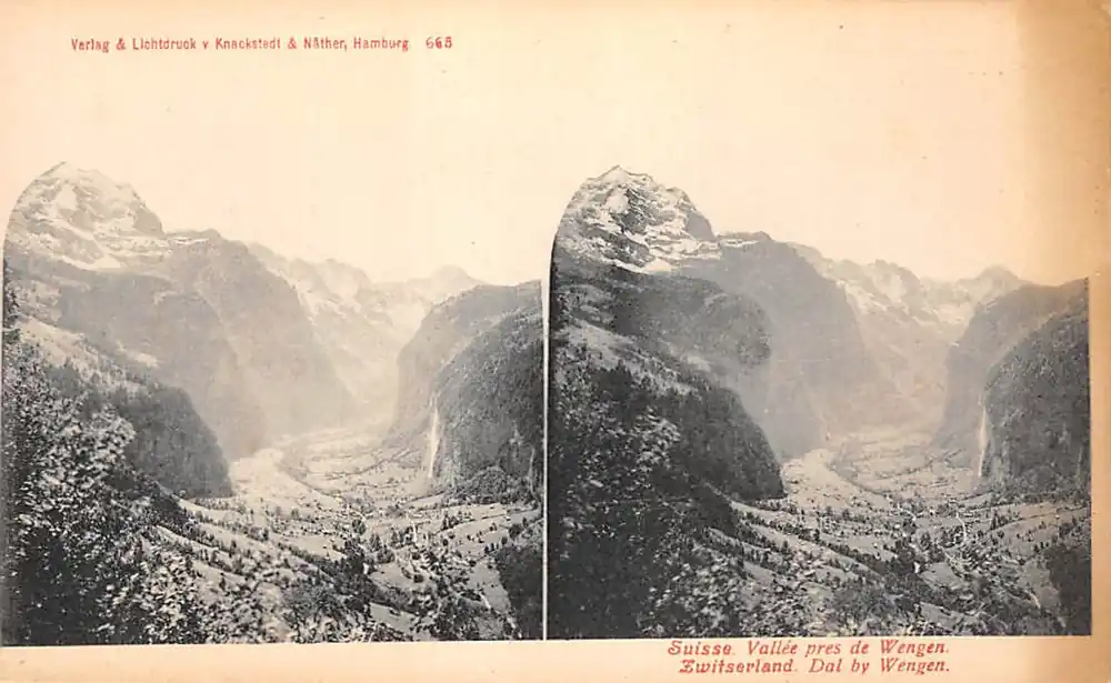 Zwrot pieniędzy Zwitserland Dal by Wengen Suisse Valle pres de Wengen Stereokaart 1900 Schweiz Switzerland Europa HC57025